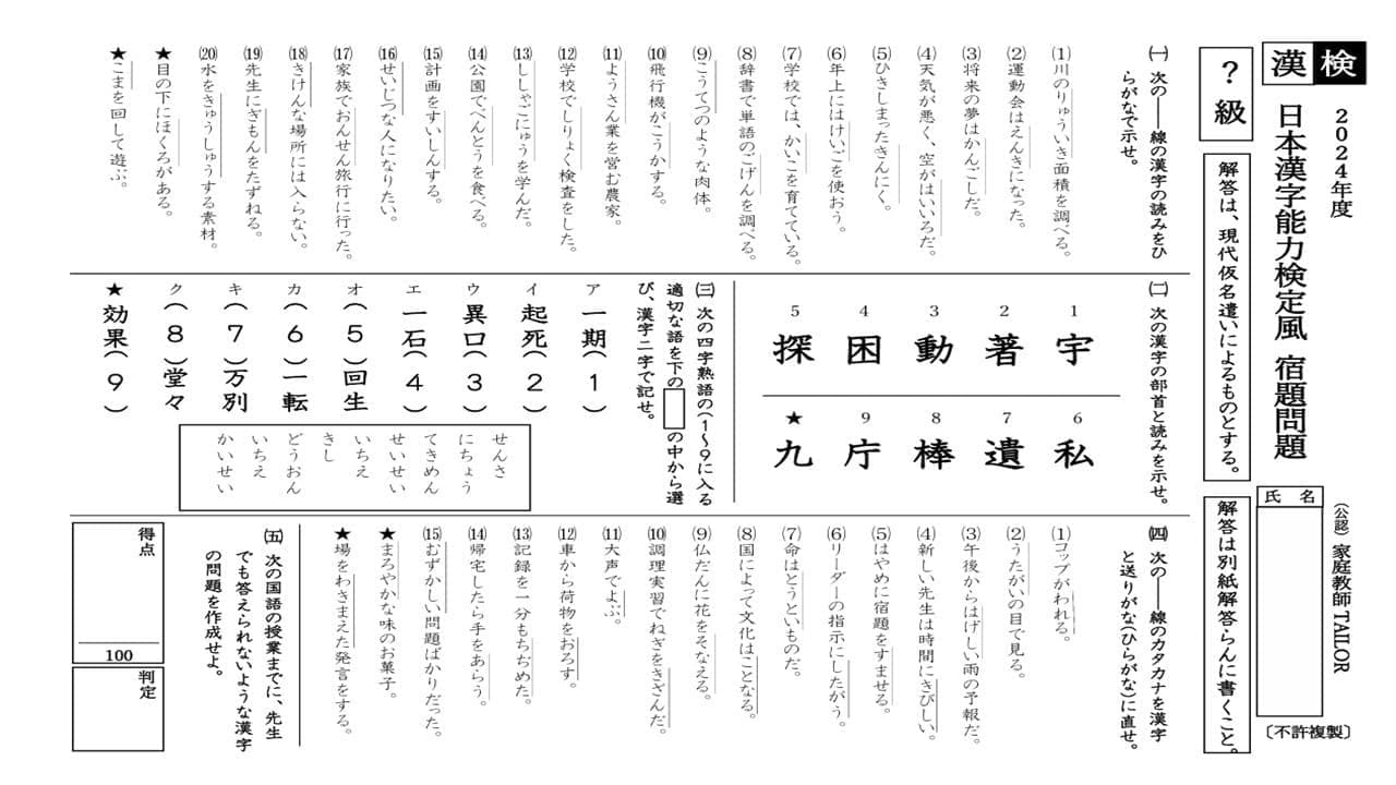 例えば、「漢字検定取れた!」と嬉しそうに報告してくれたお子様には、漢字検定風のワークシートを作成しました。単調にドリルに臨むのではなく、毎回違った雰囲気で、反復練習でも楽しめるような宿題を作成しています。